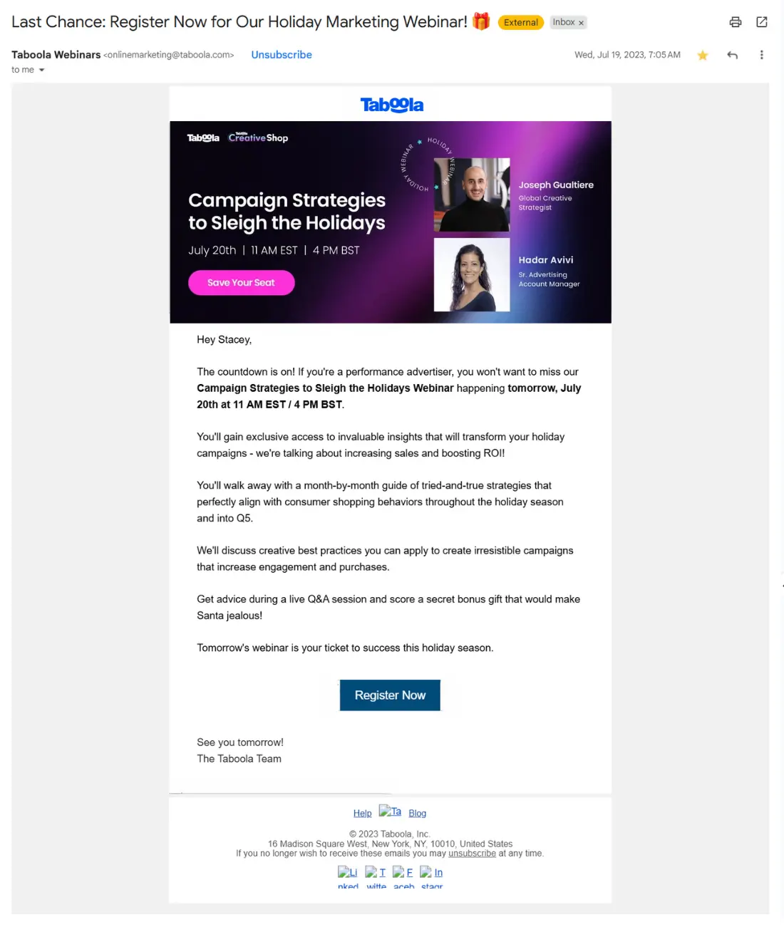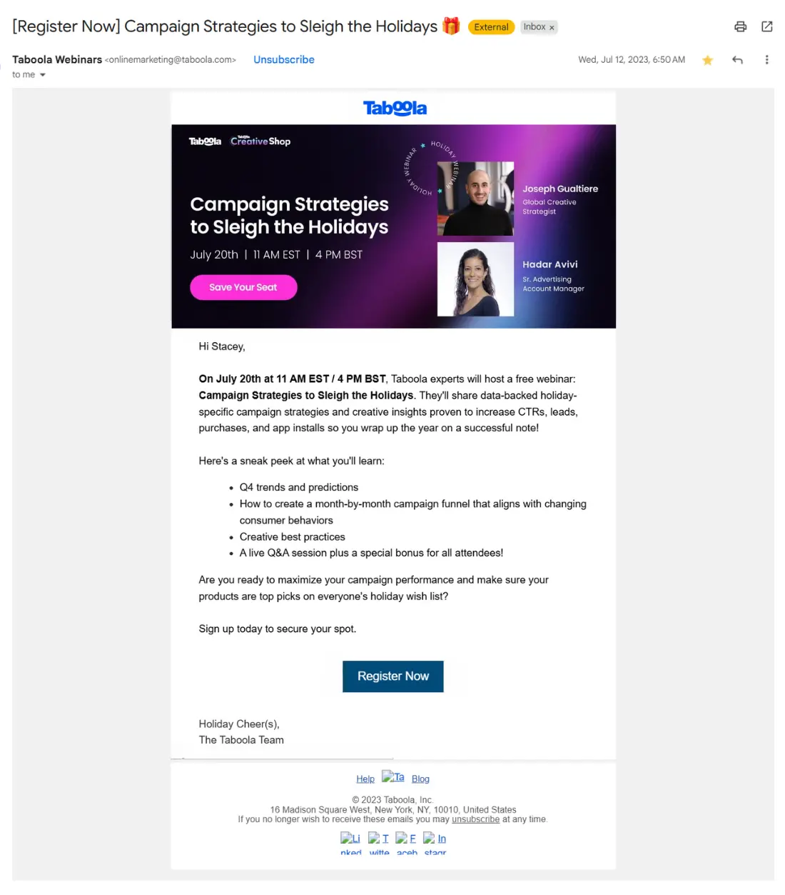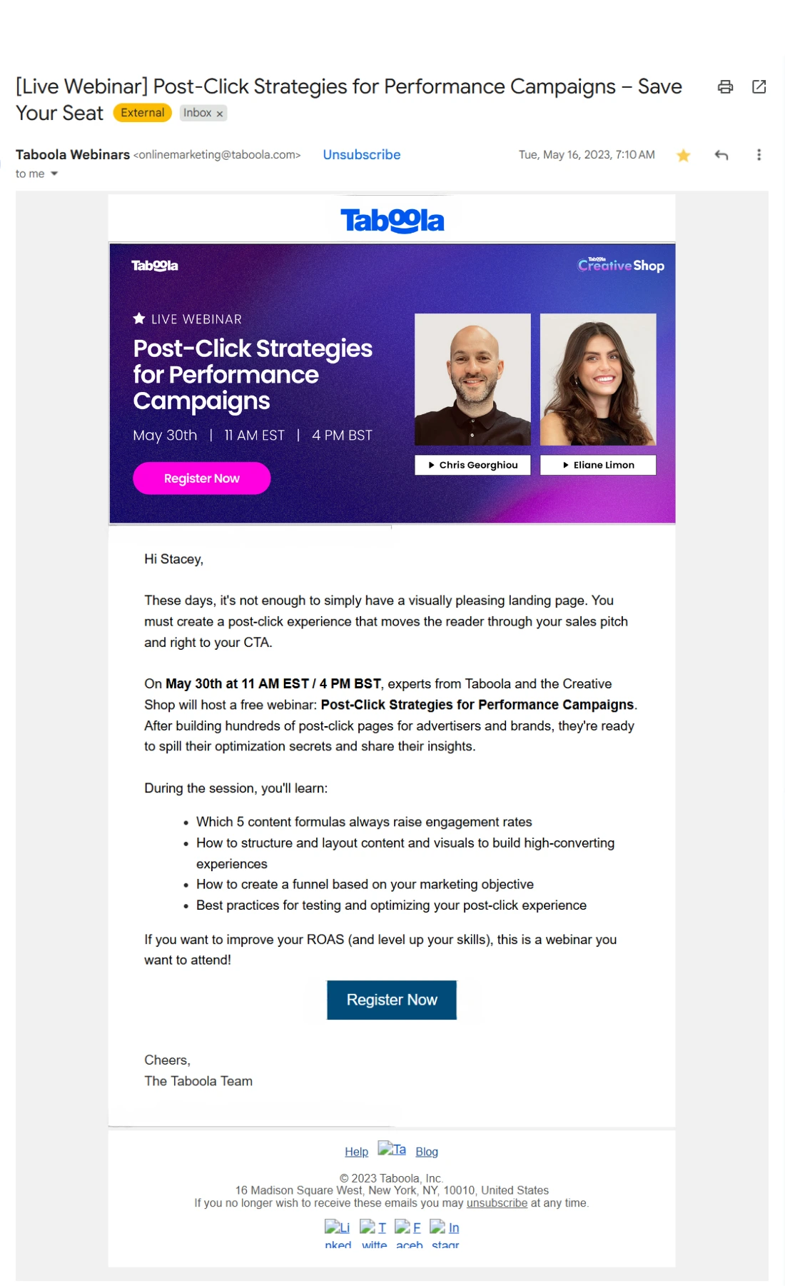 Taboola Webinar Campaign 4: Landing Page, Emails & Social -